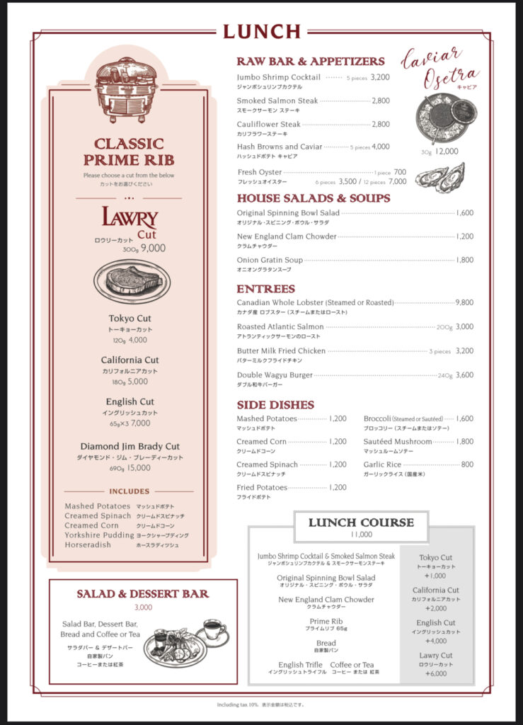 Lawry’s The Prime Ribは、アメリカ・ビバリーヒルズ発祥のプライムリブ(骨付きローストビーフ)を看板にしたアメリカンダイニングレストランで、1938年にアメリカで創業し、東京・恵比寿の他に赤坂や大阪にも展開してるようです🎵