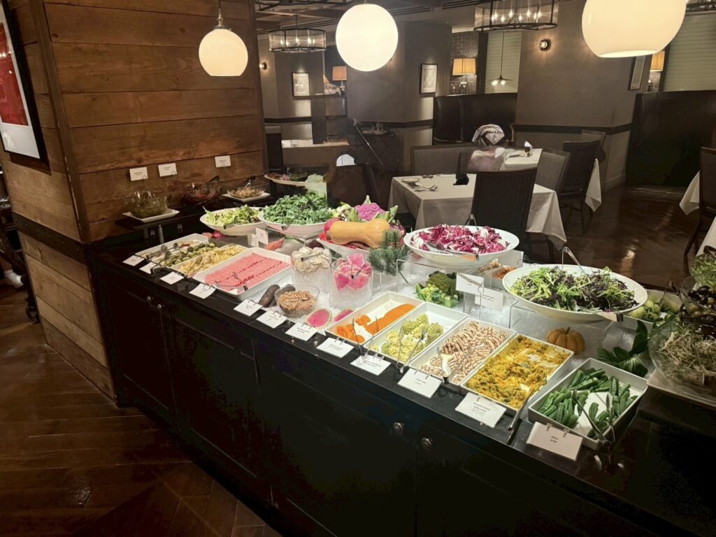 いろんな種類の野菜がたくさんあって、サラダバーだけでお腹いっぱいになりそうな勢い。