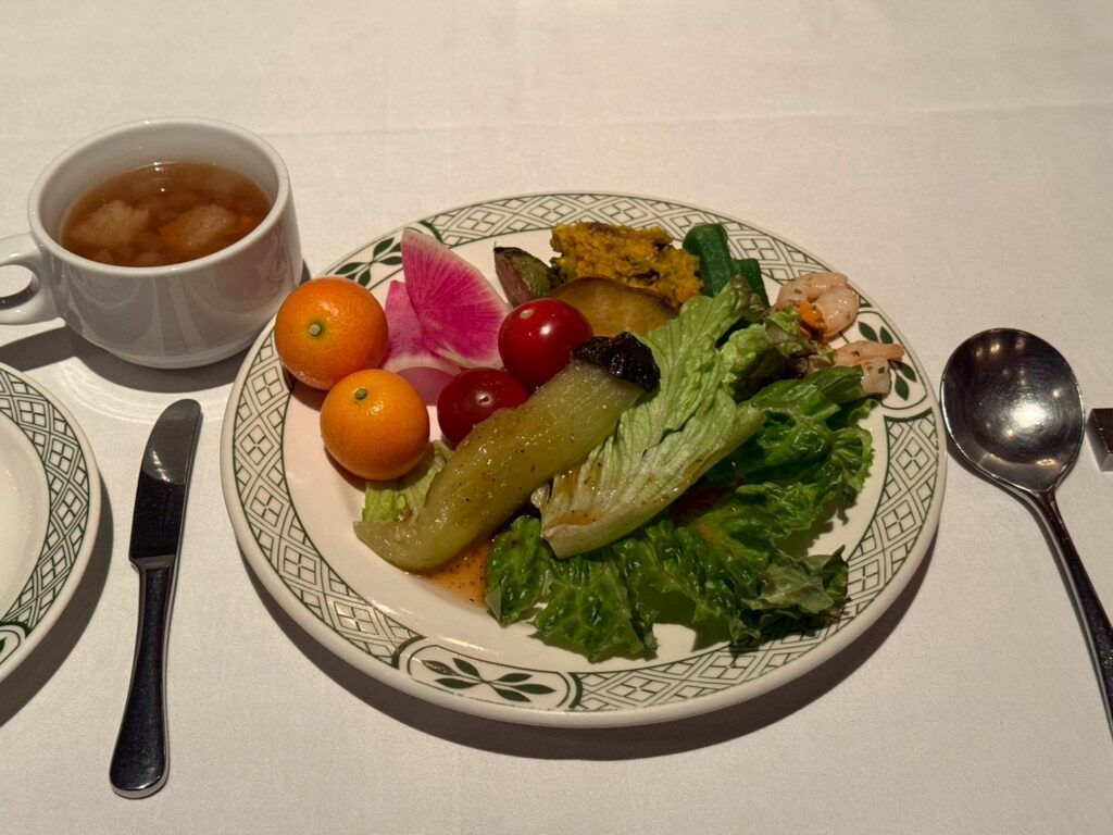 サラダバーは個人で好きなものを食べられるのでいいですね!さっそく好きなものを取ってきたのでいただきます!