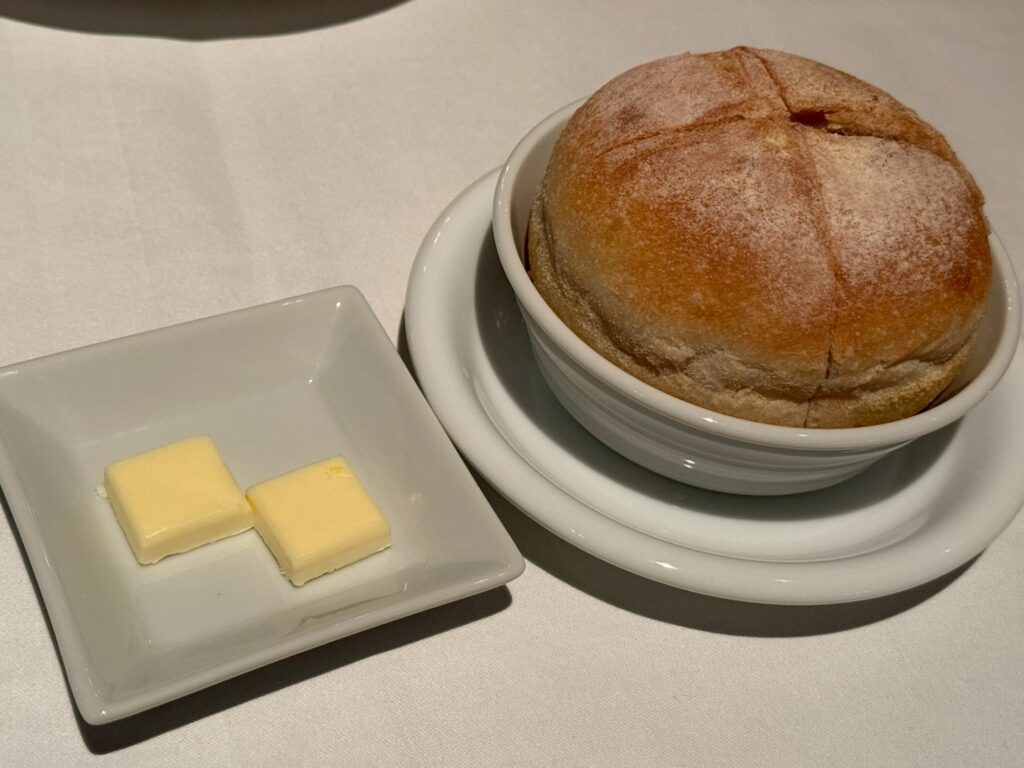 サラダを食べていると途中で、ほわほわのパンがやってきます🍞