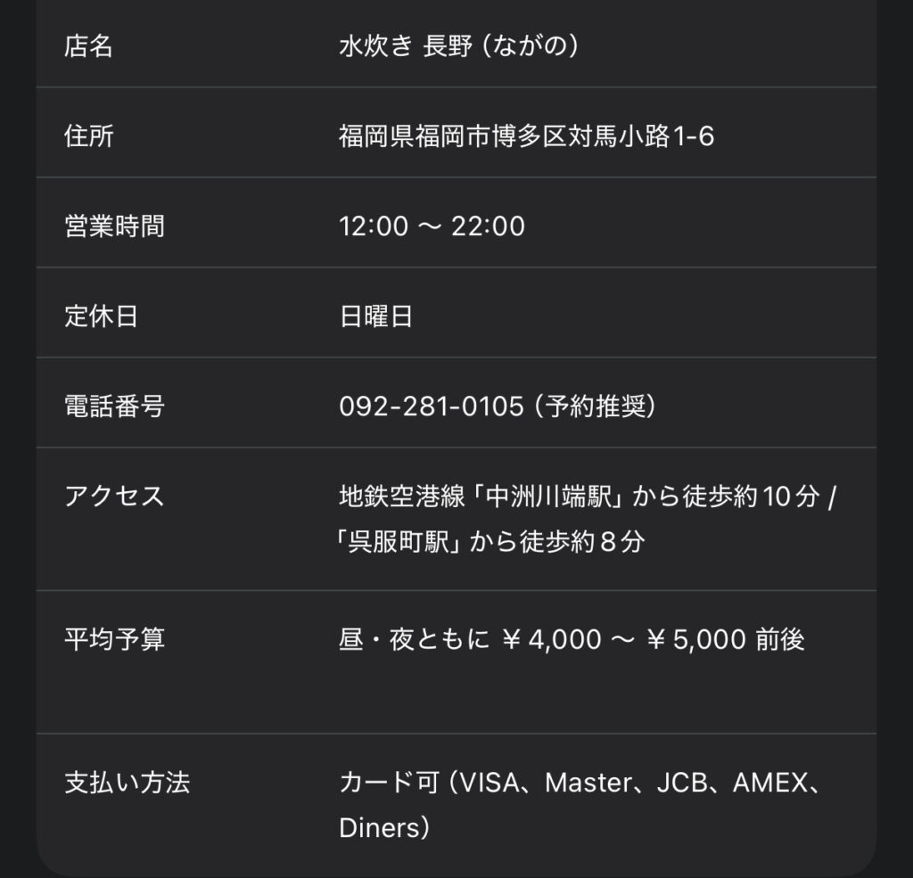 博多に来たなら、どうしても行きたかった場所。数週間前から予約をし、ようやく訪れることができたのが『水たき 長野』です!